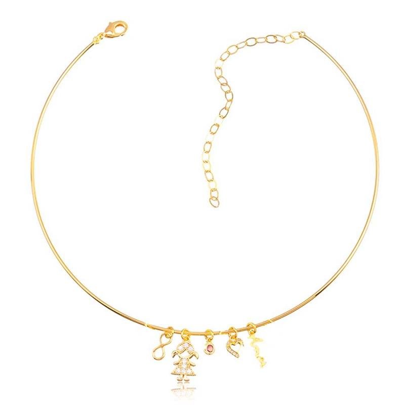 A Gargantilha Aro Folheada Menina Cravejada simboliza amor e delicadeza em um design sofisticado. Seu pingente cravejado com zircônias realça o aro, trazendo brilho elegante ao colo. Folheada a ouro 18k, oferece acabamento refinado e excelente durabilidade. Uma semijoia especial, perfeita para uso diário ou para presentear com significado.Dimensões aproximadas: