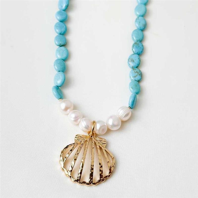 A Gargantilha Folheada Concha Vazada Turquesa e Pérolas Barrocas traz o encontro perfeito entre o charme praiano e a sofisticação das semijoias finas. A concha vazada destaca a pedra turquesa central, enquanto as pérolas barrocas acrescentam elegância orgânica e atemporal. Ideal para quem deseja empreender com semijoias no atacado, direto da fábrica, folheadas a ouro 18k e alinhadas às principais tendências do momento.Dimensões aproximadas: