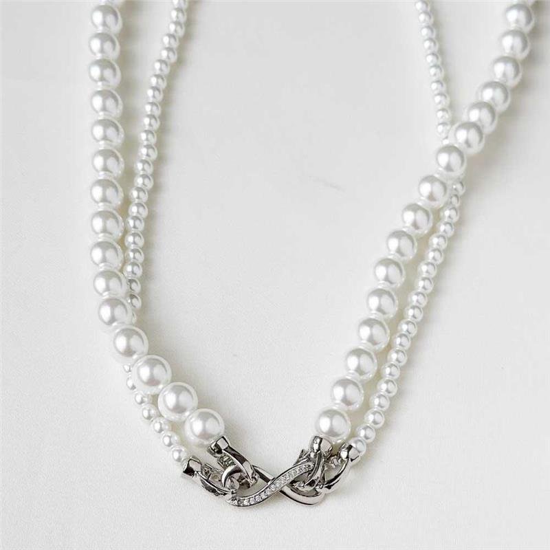 A Gargantilha Folheada Dupla de Pérolas Fecho Infinito Cravejado une delicadeza e sofisticação em um design moderno e elegante. O fecho infinito cravejado valoriza o brilho das pérolas, criando um efeito luxuoso e atemporal. Perfeita para semijoias no atacado, empreender com semijoias finas folheadas a ouro 18k e seguir as últimas tendências.Dimensões aproximadas: