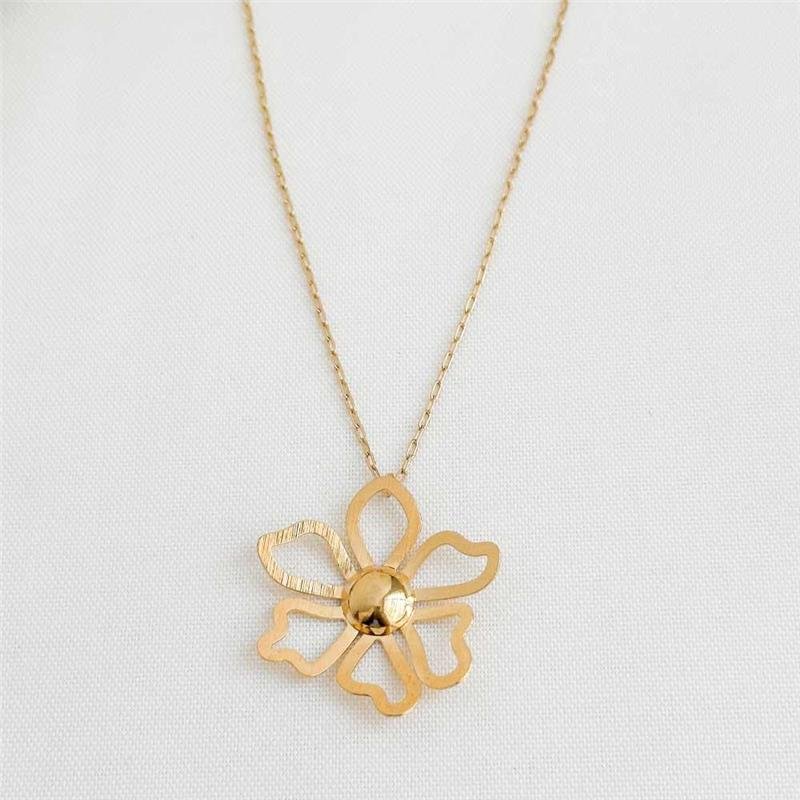 A Gargantilha Folheada Flor Vazadа Lisa expressa leveza e elegância em um design clean e atemporal. Sua flor vazada, folheada a ouro 18k, realça a delicadeza com um toque moderno e sofisticado. Ideal para quem busca semijoias finas e deseja empreender com peças de tendências exclusivas.Dimenões aproximadas:
