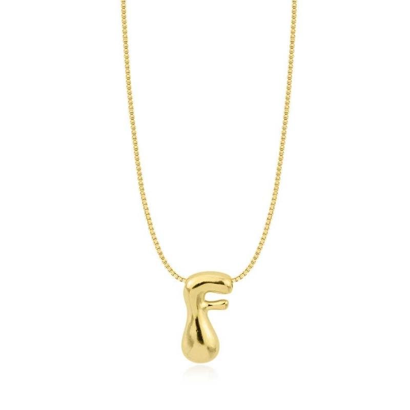 A Gargantilha Folheada Letra F é uma peça delicada e sofisticada, ideal para destacar sua identidade com elegância. Produzida com banho de ouro 18k, garante brilho e durabilidade incomparáveis. Perfeita para compor looks modernos e atemporais.Dimensões aproximadas: