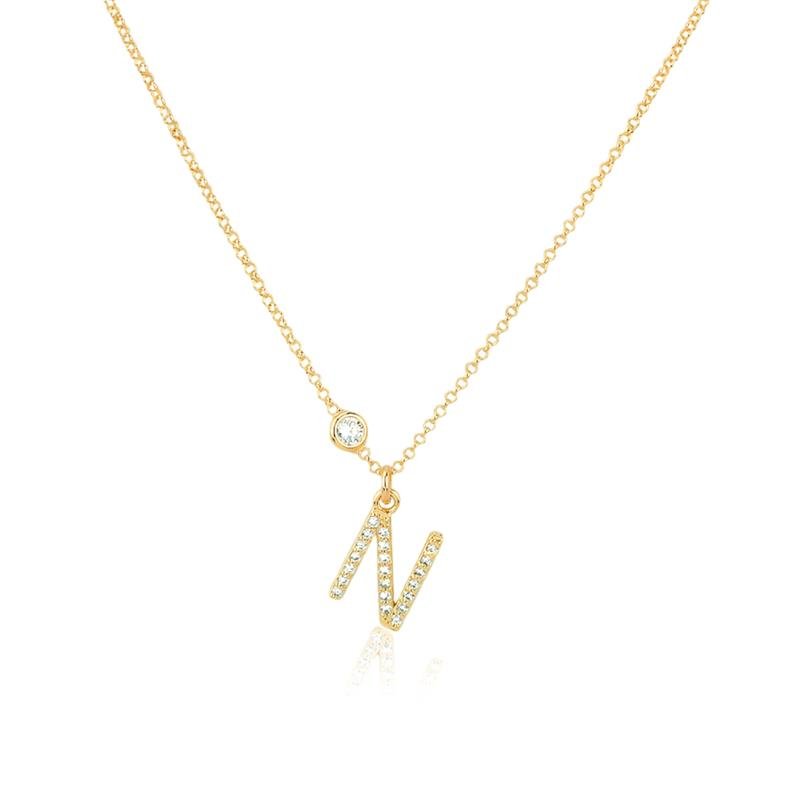 A Gargantilha Folheada Letra N Cravejada é a peça ideal para quem busca um acessório moderno e sofisticado. Com um design delicado e a letra "N" ricamente cravejada com zircônias, ela é perfeita para realçar seu estilo de forma única. Feita em semijoias folheadas a ouro 18k, garante durabilidade e brilho. Combine com outros itens da coleção para um look completo e cheio de charme.Dimensões aproximadas: