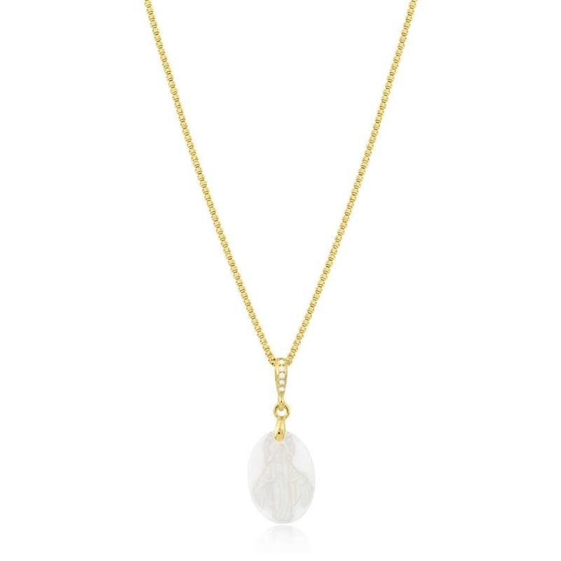 Encante-se com a Gargantilha Folheada Nossa Senhora das Graças com Ponto de Luz, uma peça delicada e cheia de significado, perfeita para expressar fé e estilo. Produzida com folheação em ouro 18k, garante brilho e durabilidade, ideal para compor looks sofisticados.Dimensões aproximadas: