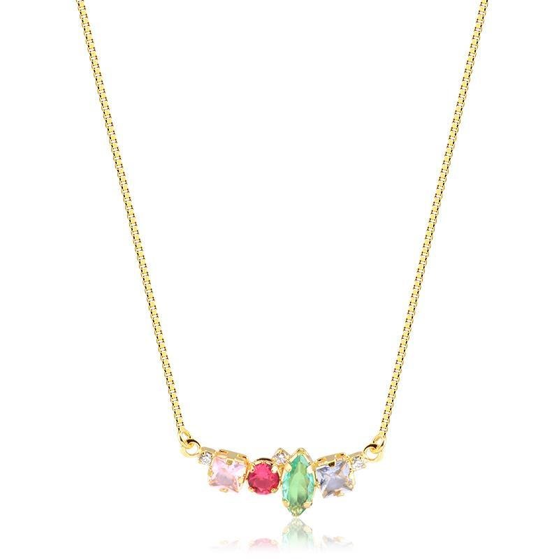 A Gargantilha Folheada Pedra Color encanta com seu toque vibrante e sofisticado. As pedras coloridas refletem luz e alegria, trazendo um charme moderno e delicado ao visual. Ideal para compor looks elegantes e destacar a beleza com sutileza e estilo.Dimensões aproximadas: