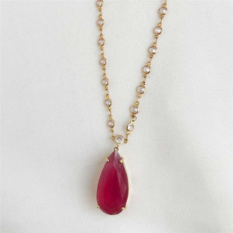 A gargantilha folheada pingente de pedra vermelha com detalhes de ponto de luz - premium é um símbolo de elegância e intensidade. O contraste entre o vermelho vibrante e o brilho sutil dos pontos de luz cria um visual sofisticado e atemporal. Uma peça perfeita para destacar o colo com charme e luminosidade.Dimensões aproximadas: