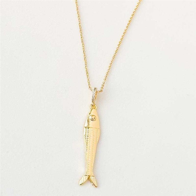 A Gargantilha Folheada Pingente Peixe Sardinha Detalhado combina charme moderno e um toque divertido, trazendo um pingente minuciosamente trabalhado que destaca personalidade e estilo. Sua folheação em ouro 18k garante brilho duradouro e acabamento impecável. Uma peça perfeita para quem busca semijoias diferenciadas, alinhadas às tendências atuais e ideais para empreender com semijoias finas no atacado.Dimensões aproximadas: