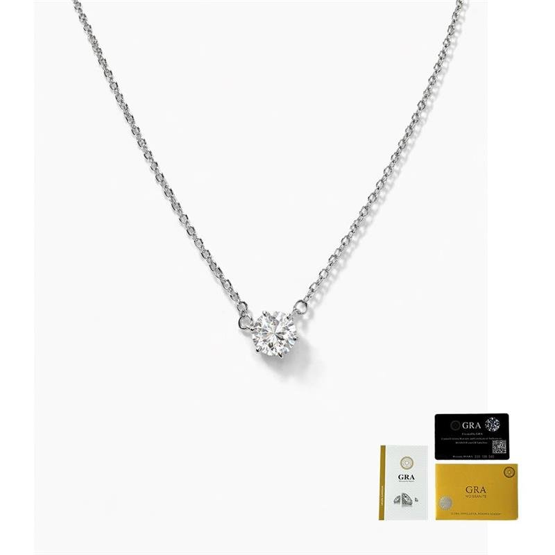 A Gargantilha Pedra Circular Moissanite Prata 925 com banho em ródio | acompanha porta joias é pura elegância e brilho intenso.A moissanite de lapidação circular proporciona luminosidade excepcional e acabamento refinado.