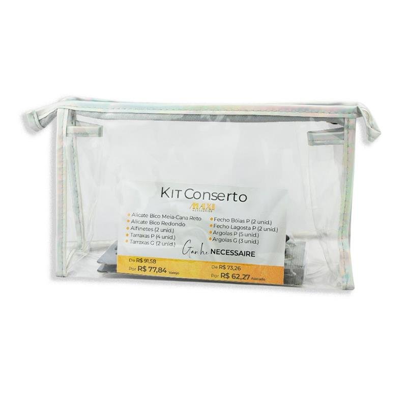 Mantenha suas semijoias impecáveis com este kit de conserto completo! Com alicates de precisão, tarraxas, fechos e argolas, ele é perfeito para ajustes e personalizações. Uma solução indispensável para quem trabalha com semijoias no atacado, garantindo qualidade e durabilidade.Alicate Bico Meia Cana Reto