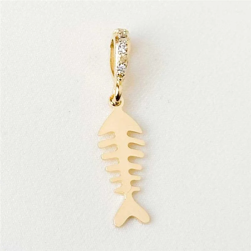 O Pingente Folheado Esqueleto de Peixe Passador Cravejado une sofisticação e delicadeza em uma peça única. Com design cravejado e acabamento em ouro 18k, destaca-se pelo brilho e detalhes minuciosos. Ideal para compor looks modernos e elegantes, é perfeito para quem deseja investir em semijoias no atacado e empreender com peças finas e de tendências.Dimensões aproximadas: