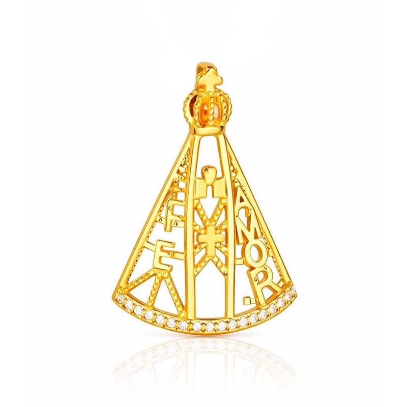 O Pingente Folheado N.S. Aparecida transmite fé, proteção e elegância em uma peça delicadamente desenhada. Sua folheação em ouro 18k realça cada detalhe, trazendo brilho e sofisticação ao visual. Um acessório atemporal que segue as tendências e combina com qualquer estilo. Ideal para empreender com semijoias finas no atacado direto da fábrica.Dimensões aproximadas: