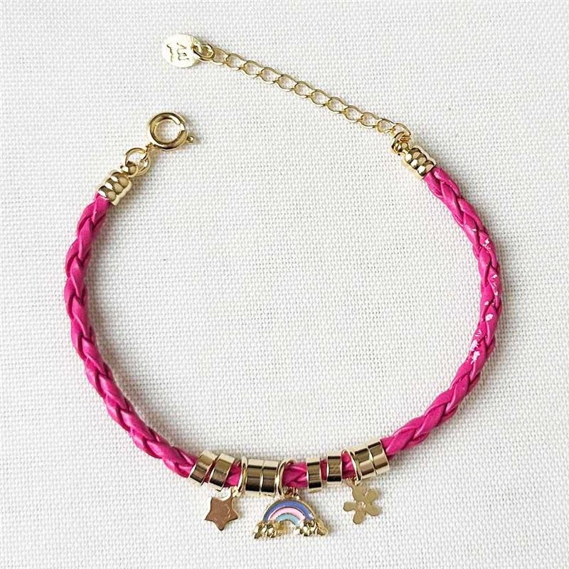 Encante com a delicadeza da Pulseira Folheada Arco-Íris Rosa Infantil, uma joia encantadora que une brilho e ternura. Folheada a ouro 18k, é ideal para iluminar momentos especiais.Dimensões aproximadas:
