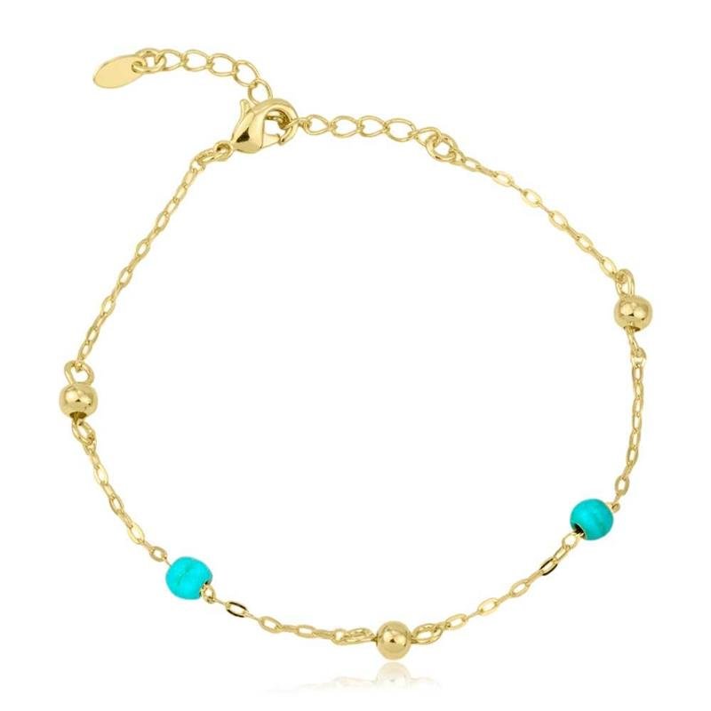 A Pulseira Folheada Bolinha e Pedra Turquesa é um acessório delicado e sofisticado, perfeito para compor looks modernos e cheios de estilo. Produzida com folheação em ouro 18k, garante brilho e durabilidade excepcionais.Dimensões aproximadas: