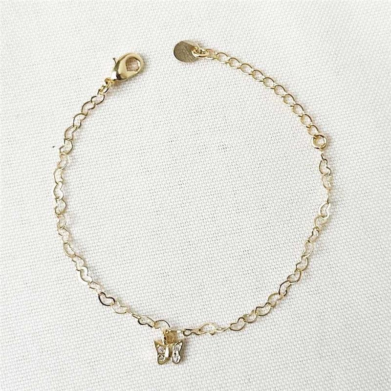 Encante os pequenos com a delicadeza da Pulseira Folheada Borboleta Coração - Infantil. Uma semijoia charmosa, perfeita para ocasiões especiais ou para o dia a dia, combinando design delicado e acabamento folheado a ouro 18k.Dimensões aproximadas: