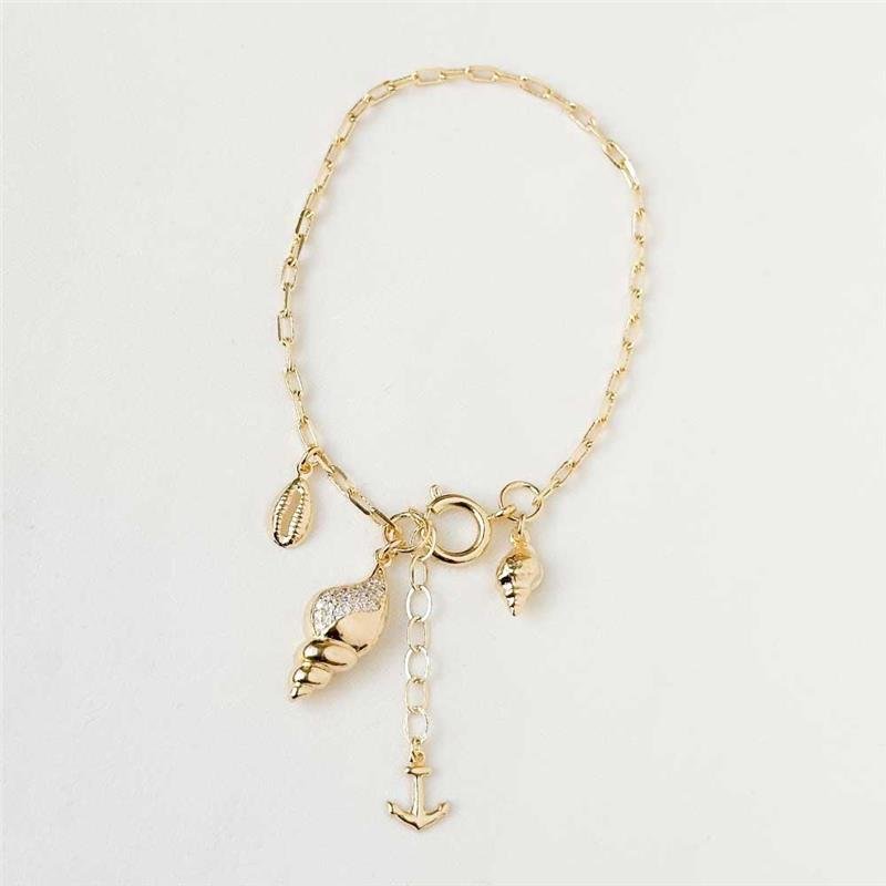 A Pulseira Folheada Concha Cravejada encanta com seu design delicado e o brilho sutil das zircônias que realçam a beleza do dourado. Inspirada no encanto do mar, é uma peça sofisticada e versátil, perfeita para quem ama elegância com toque natural. Ideal para compor looks modernos e femininos.Dimensões aproximadas: