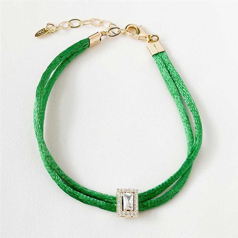A Pulseira Folheada Cordão Verde Pedra Retangular Cravejada une sofisticação e brilho em um design exclusivo. Suas pedras retangulares cravejadas proporcionam elegância e destaque ao look, tornando-o ainda mais encantador. Ideal para usar sozinha ou combinar com outras semijoias, perfeita para ocasiões especiais ou no dia a dia. Produzida com folheação de alta qualidade, garantindo durabilidade e acabamento impecável.Dimensões aproximadas: