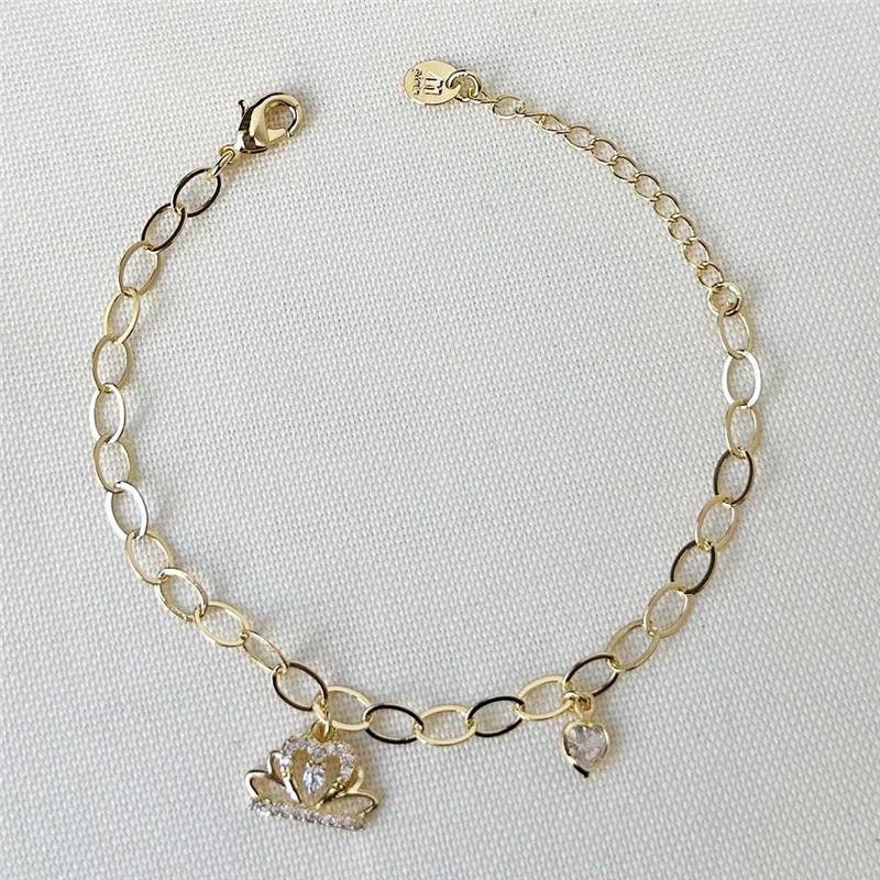 A Pulseira Folheada Coroa Ponto de Luz Coração – Infantil encanta com seu design delicado e brilho especial, perfeita para presentear. Produzida com banho em ouro 18k, é uma peça sofisticada e durável.Dimensões aproximadas: