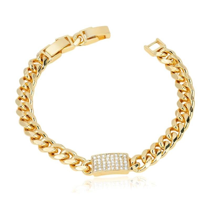 A Pulseira Folheada Malha Grumet Cravejada destaca-se pelo design marcante e brilho sofisticado. Cravejada com zircônias e acabamento impecável, é perfeita para composições elegantes e modernas. Ideal para quem deseja empreender com semijoias finas, seguindo as principais tendências do mercado. Excelente opção de semijoias no atacado, direto da fábrica, com banho em ouro 18k.Dimensões aproximadas: