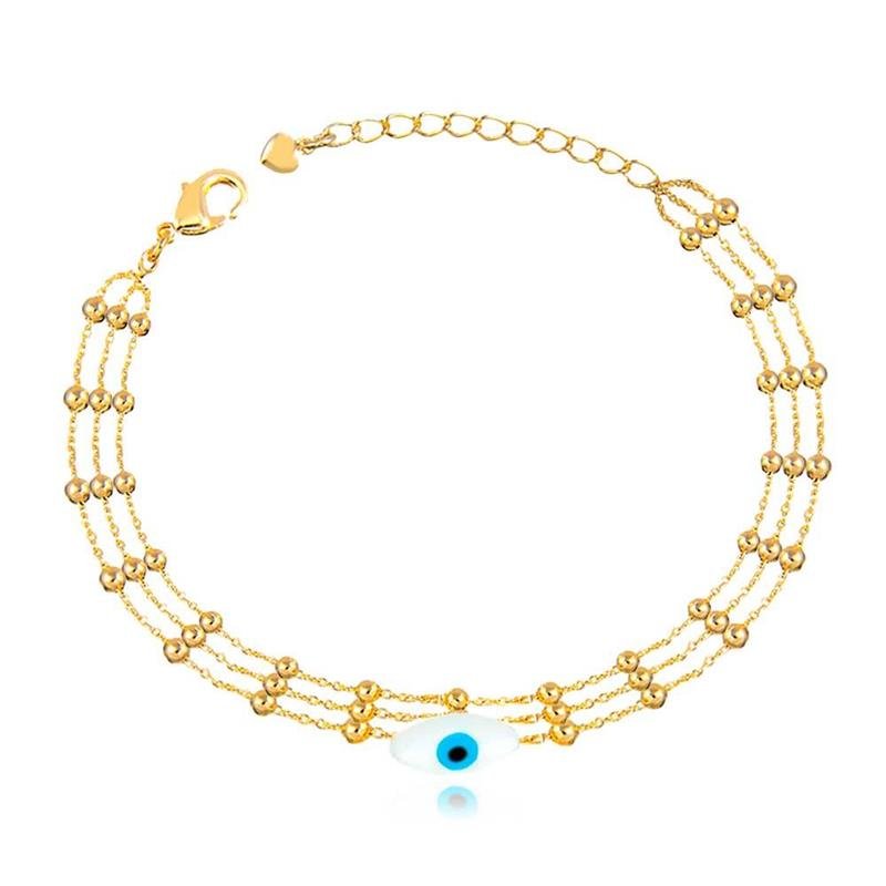 A Pulseira Folheada Olho Grego Bolinhas une proteção, estilo e delicadeza em uma peça cheia de significado. Suas bolinhas folheadas a ouro 18k destacam o charme do olho grego, criando um visual moderno e elegante. Perfeita para quem busca semijoias finas e tendências para empreender com semijoias no atacado direto da fábrica.Dimensões aproximadas: