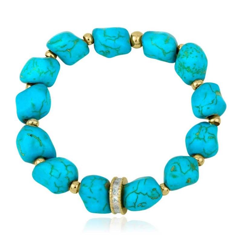 - PULSEIRA FOLHEADA PEDRA TURQUESA COM ROLETE ZIRCÔNIA