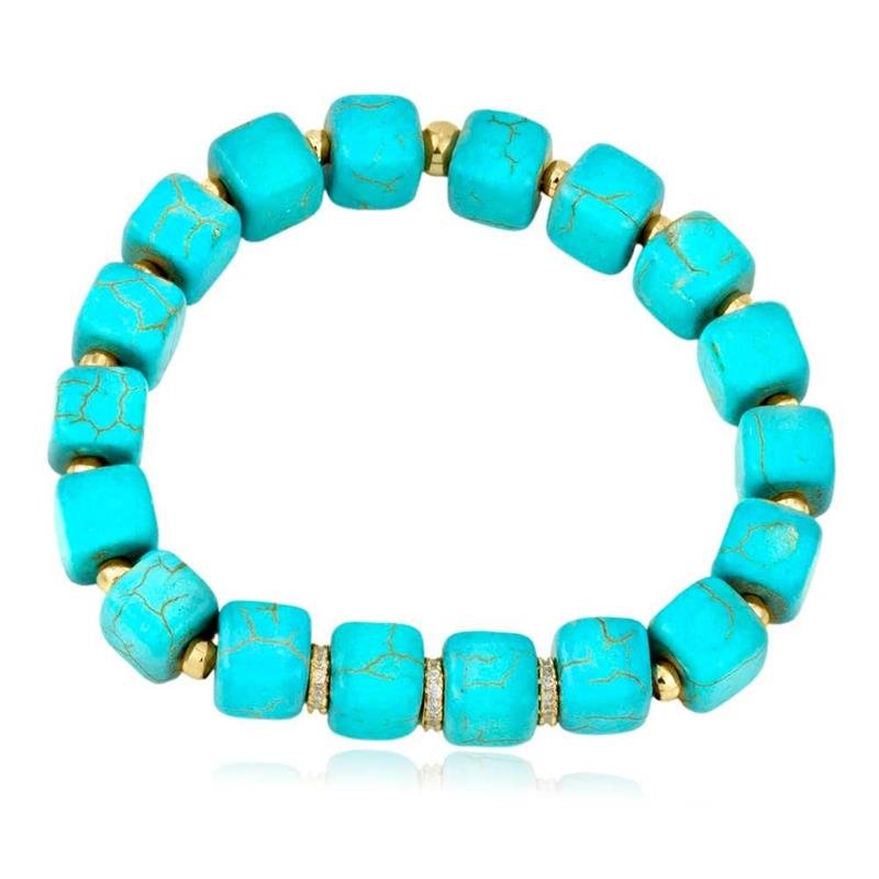 - PULSEIRA FOLHEADA PEDRA TURQUESA COM ROLETES DOURADOS