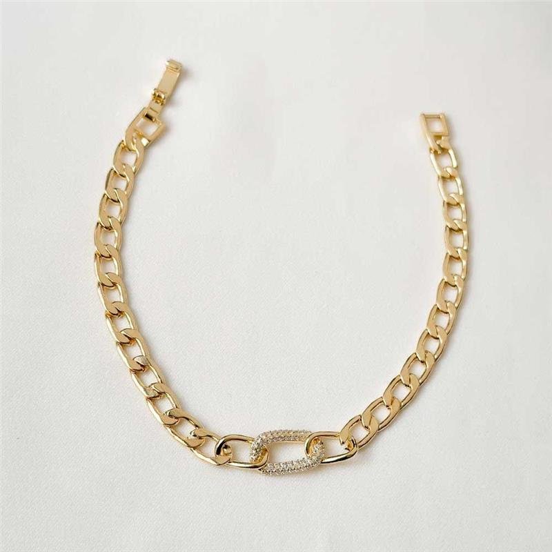 A Pulseira Folheada Zircônia Elo Oval Cravejado combina delicadeza e sofisticação. Seus elos ovais, totalmente cravejados com zircônias, oferecem brilho intenso e um toque de elegância, tornando a peça perfeita para compor looks modernos e refinados.Dimensões aproximadas: