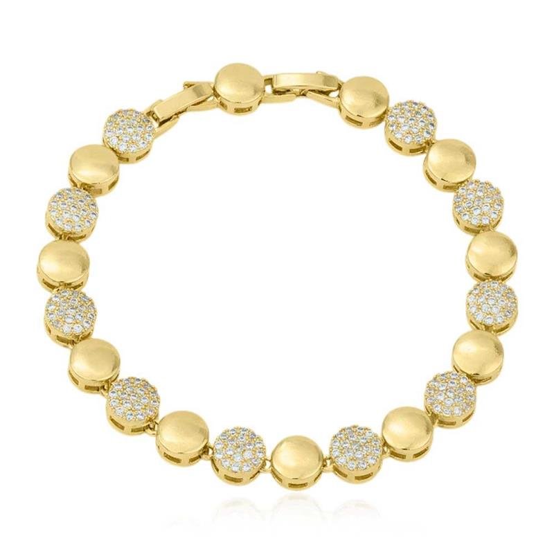 A pulseira folheada com zircônia combina brilho sofisticado e design elegante em uma peça que valoriza qualquer produção. Com acabamento impecável e pedras lapidadas com precisão, é uma joia versátil, feminina e cheia de estilo. Ideal para compor looks refinados ou dar um toque de glamour ao dia a dia.Dimensões Aproximadas: