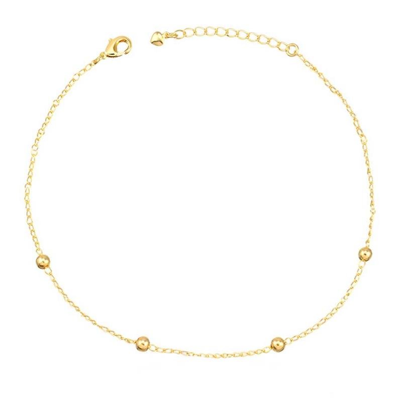 A Tornozeleira Folheada Esferas Lisas Interligadas traz um design minimalista e sofisticado, formado por esferas suaves que refletem brilho com elegância. Folheada a ouro 18k, segue as principais tendências de semijoias, sendo perfeita para compor looks modernos e delicados. Ideal para quem deseja empreender com semijoias finas e adquirir produtos no atacado direto da fábrica. Um acessório versátil, leve e cheio de estilo.Dimensões aproximadas: