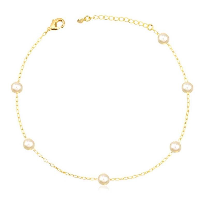 A Tornozeleira Folheada Pérolas Espaçadas combina delicadeza e elegância em um design leve e sofisticado. Suas pérolas distribuídas garantem charme atemporal, perfeito para quem ama semijoias finas e tendências versáteis. Ideal para emprender com semijoias no atacado direto da fábrica. Uma peça folheada a ouro 18k que ilumina qualquer look.Dimensões aproximadas: