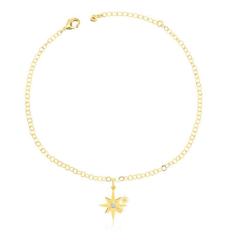 A Tornozeleira Folheada Pingente Estrela Ponto de Luz combina brilho e delicadeza em um design que ilumina o tornozelo com elegância. O pingente de estrela, folheado a ouro 18k e adornado por um ponto de luz radiante, segue as principais tendências de semijoias. Ideal para quem deseja empreender com semijoias finas e adquirir peças no atacado direto da fábrica. Um acessório moderno, encantador e perfeito para destacar qualquer look.Dimensões aproximadas: