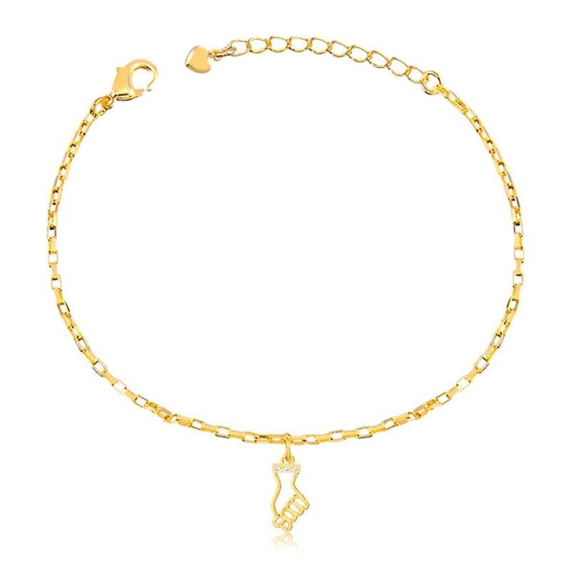 A Tornozeleira Folheada Pingente Pé Cravejado traz delicadeza e significado em um design cheio de brilho, perfeito para iluminar o tornozelo com sutileza. O pingente em formato de pé, cravejado em detalhes e folheado a ouro 18k, segue as principais tendências de semijoias, oferecendo charme e elegância. Ideal para quem deseja empreender com semijoias finas e comprar no atacado direto da fábrica. Uma peça moderna, simbólica e versátil para qualquer estilo.Dimensões aproximadas: