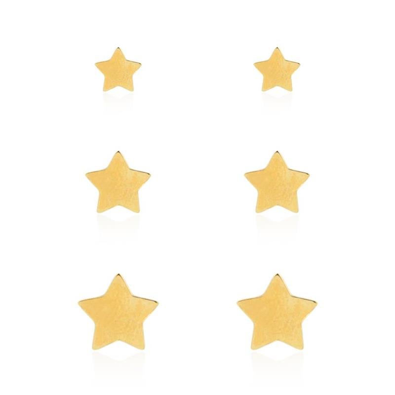 O trio folheado estrela lisa é um conjunto encantador e minimalista, apresentando três brincos com o icônico design de estrela em uma superfície lisa e reluzente.Esses brincos adicionam um toque sutil de elegância e estilo ao seu visual diário, sendo versáteis para combinar com diferentes looks e ocasiões.
